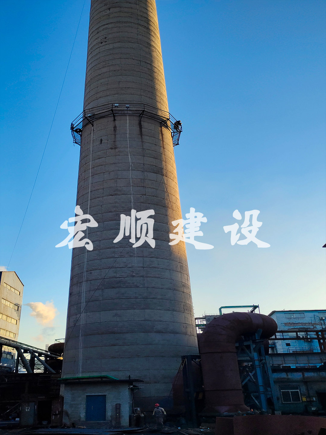 熱烈祝賀本溪水泥煙囪爬梯平臺更換安裝順利開工